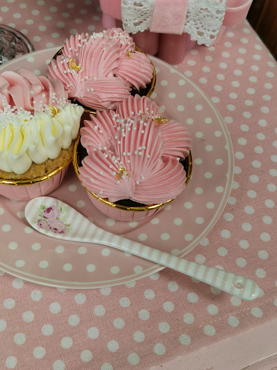 Porceliano lėkštelė, dekoruota smulkiomis rožytėmis ir rožiniu apvaduku.