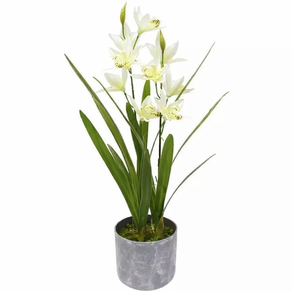 Dirbtinė gėlė su vazonu orchidėja 54 cm. balta