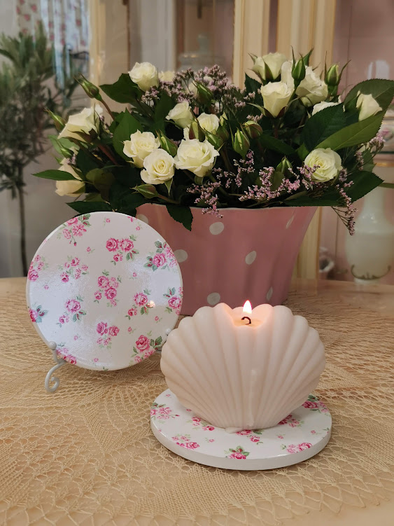 Keraminis padėkliukas puodeliui, žvakei LUCY kolekcija. Apačia kamštinė.