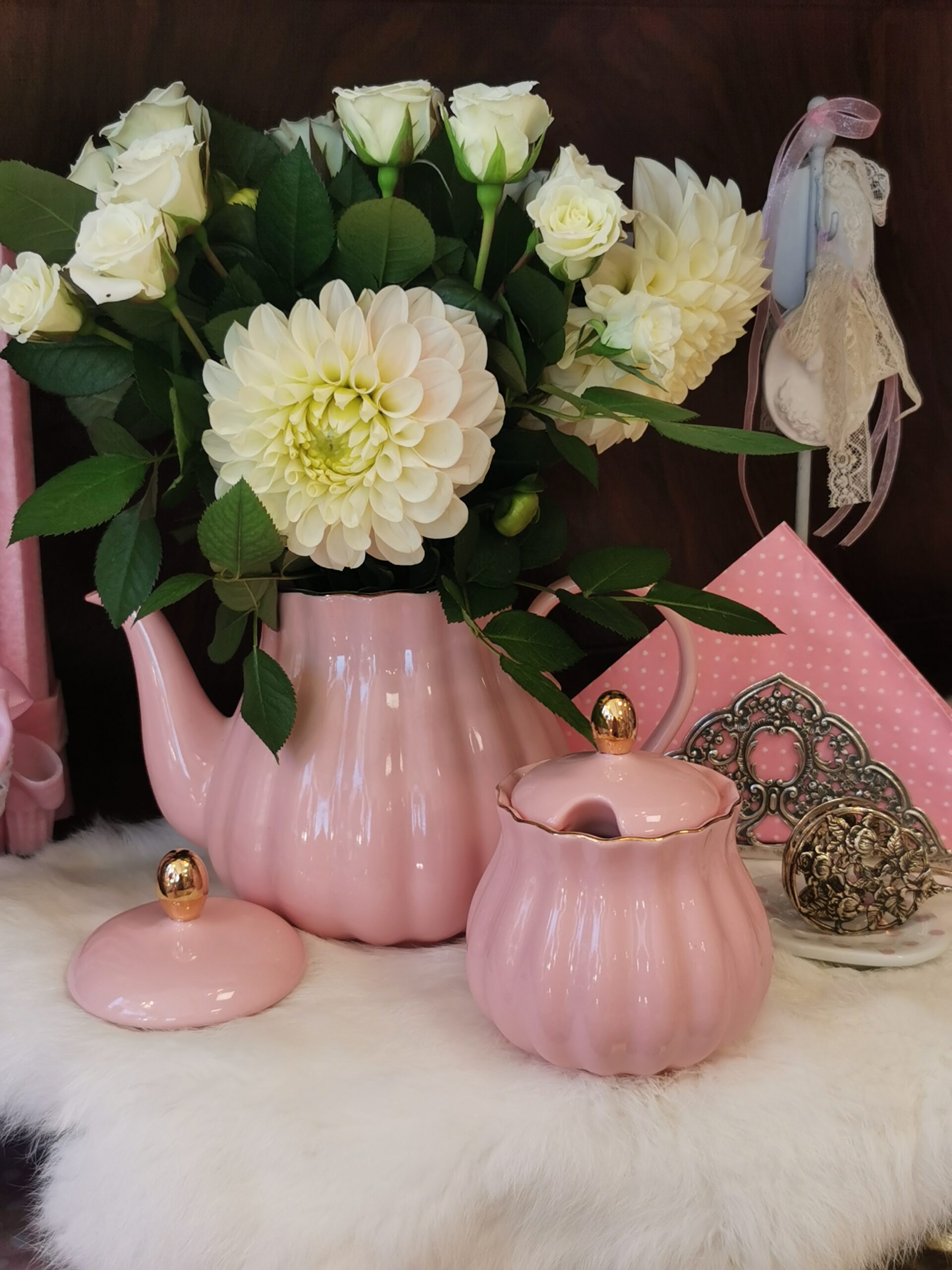 Elegantiška porceliano cukrinė. Šios kolekcijos indai derės ir moderniame ir vintažiniame interjere. Pagamintas iš aukščiausios kokybės kaulinio porceliano, švelniai rožinės spalvytės.