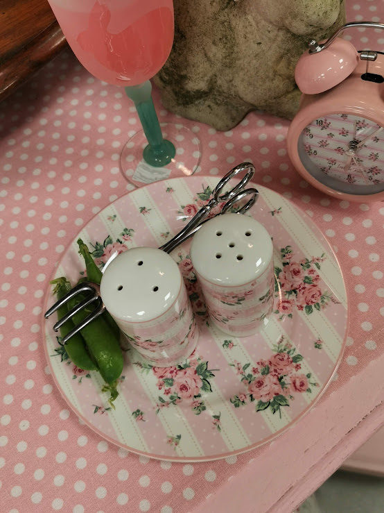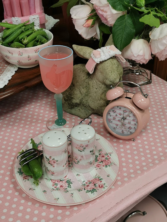 Porceliano puodelis su lėkštele, dekoruoti smulkiomis rožytėmis ir baltais taškeliais. Romantiškas ir labai mielas dizainas. Spalvos ramios, pastelinės ir tikrai jaukios.