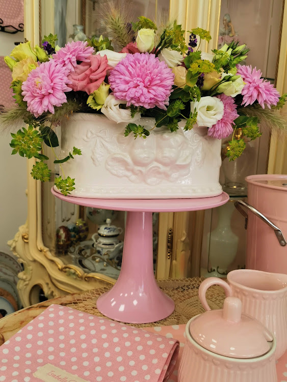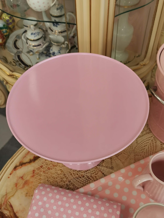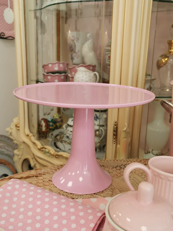 Pastelinės rožinės spalvos su baltais taškiukais cukrinė.