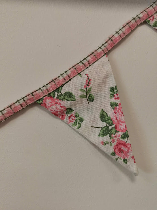 100 proc. medvilnės vėliavėlių girlianda. Dekoruota rožytėmis. Papuoš gimtadienio šventę, gal naudosite nuotraukoms sukabinti.